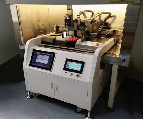 采用加樣機(jī)器人,全程操作在生物安全柜中進(jìn)行,人與生物樣本“零開(kāi)放式接觸”,可以一鍵式完成核酸檢測(cè)中樣本的開(kāi)蓋、轉(zhuǎn)移、關(guān)蓋操作,實(shí)現(xiàn)“零開(kāi)放式接觸”原始樣本管直接上機(jī)、自動(dòng)開(kāi)蓋、自動(dòng)關(guān)蓋、樣本轉(zhuǎn)移,高效視覺(jué)識(shí)別系統(tǒng),液體捕獲無(wú)滴漏,避免交叉污染,完成96個(gè)樣本前處理僅需24分鐘,適用于新冠疫情防控、臨床檢測(cè)、疾病防控、食品安全、法醫(yī)等領(lǐng)域核酸檢測(cè)。