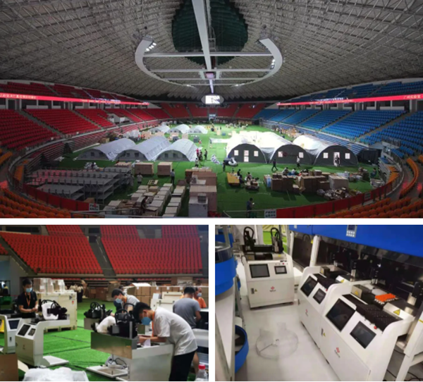 在主戰場廣州,圣湘生物工程師們全力以赴參與到廣州市政府統一協調各單位搭建的氣膜方艙實驗室工作中。6月1日,廣東首個氣膜方艙實驗室在廣州體育館正式投入使用;6月2日晚,4個氣膜方艙實驗室全面投入使用,核酸檢測日產能達到12萬管,可實現全天候收樣檢測,提高核酸檢測效率。