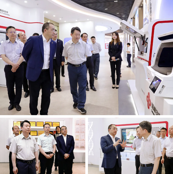 6月11日下午,國(guó)務(wù)院發(fā)展研究中心副主任隆國(guó)強(qiáng)一行實(shí)地考察調(diào)研圣湘生物。湖南省政府發(fā)展研究中心黨組書(shū)記、主任談文勝,湖南省政府發(fā)展研究中心副主任、黨組成員、湖南省政協(xié)提案委員會(huì)副主任唐宇文陪同調(diào)研。