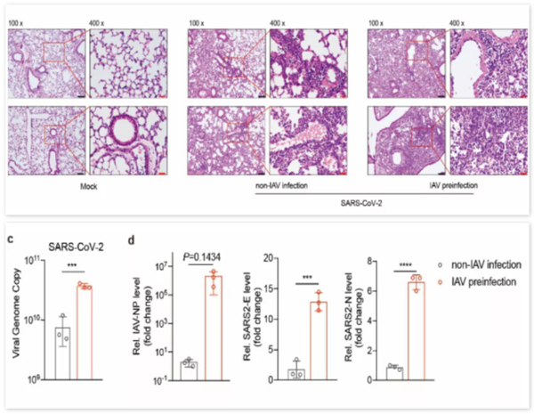 研究顯示,流感和新冠共感染會(huì)引起更嚴(yán)重的肺部病理?yè)p傷和更高的新冠病毒載量。在一項(xiàng)醫(yī)院的回顧性數(shù)據(jù)分析中發(fā)現(xiàn),尤其當(dāng)乙型流感病毒感染患者合并感染新型冠狀病毒時(shí),將會(huì)進(jìn)一步增加新冠病毒的感染載量,患者往重癥發(fā)展的幾率增加,同時(shí)嚴(yán)重的肺部病理?yè)p傷會(huì)延長(zhǎng)病情時(shí)間,而更高的新冠病毒載量會(huì)使得個(gè)體傳播能力增強(qiáng),疫情防控難度更大。