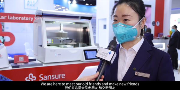 圣湘生物攜全場景化解決方案及最新研發的先進創新產品驚艷亮相,綻放中國方案力量。展館入口,圣湘生物道旗隨風飄揚,巨幅的圣湘展板隨處可見,主屏幕上的圣湘視頻滾動播放……在圣湘特裝展臺,各系列產品和方案呈現整齊有序,客戶絡繹不絕。展會首日,圣湘團隊接受了MEDLAB TV現場采訪,引來眾多專業媒體及專家學者前來了解圣湘產品和解決方案。