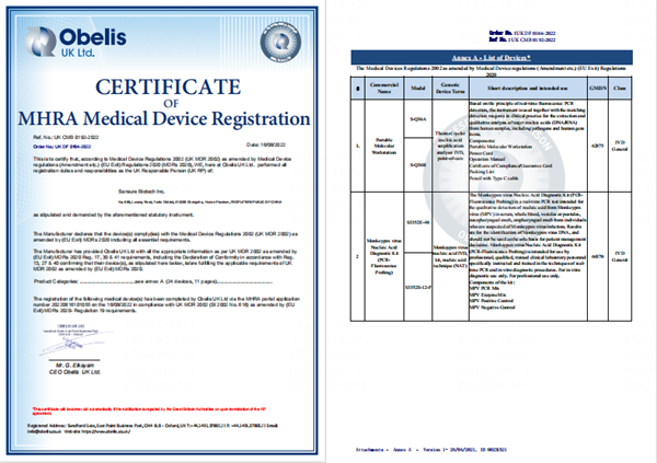 近日,圣湘生物自主研發(fā)的猴痘病毒核酸檢測(cè)試劑盒(PCR-熒光探針?lè)ǎ┩ㄟ^(guò)英國(guó)MHRA認(rèn)證,該產(chǎn)品獲得英國(guó)MHRA注冊(cè)后,可在英國(guó)和認(rèn)可英國(guó)MHRA注冊(cè)的國(guó)家或地區(qū)銷售,這是繼歐盟CE之后斬獲的又一權(quán)威認(rèn)證。