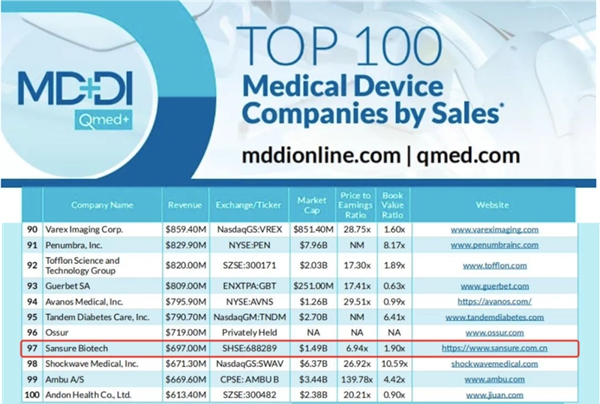 近日,醫療器械行業權威網站Medical Device+Diagnostic Industry(MD+DI)發布了2023年全球醫療器械企業TOP100榜單。圣湘生物連續兩年上榜全球百強,也是此次榜單唯二主營業務是體外診斷的中國企業。