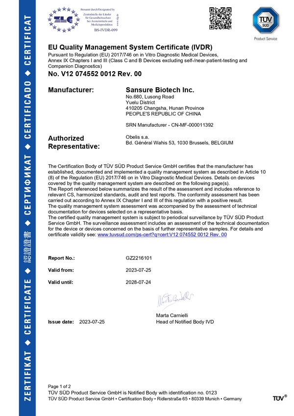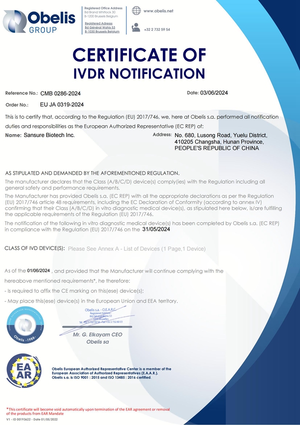 近日,圣湘生物自主研發(fā)的結(jié)核分枝桿菌核酸檢測試劑盒(PCR-熒光探針法)獲歐盟CE IVDR認(rèn)證,這是公司呼吸道產(chǎn)品獲得的首個Class C級別的準(zhǔn)入證書,為公司結(jié)核產(chǎn)品的全球布局提供了有力支持,也為全球在2030年前消滅結(jié)核的目標(biāo)貢獻(xiàn)了“圣湘力量”。