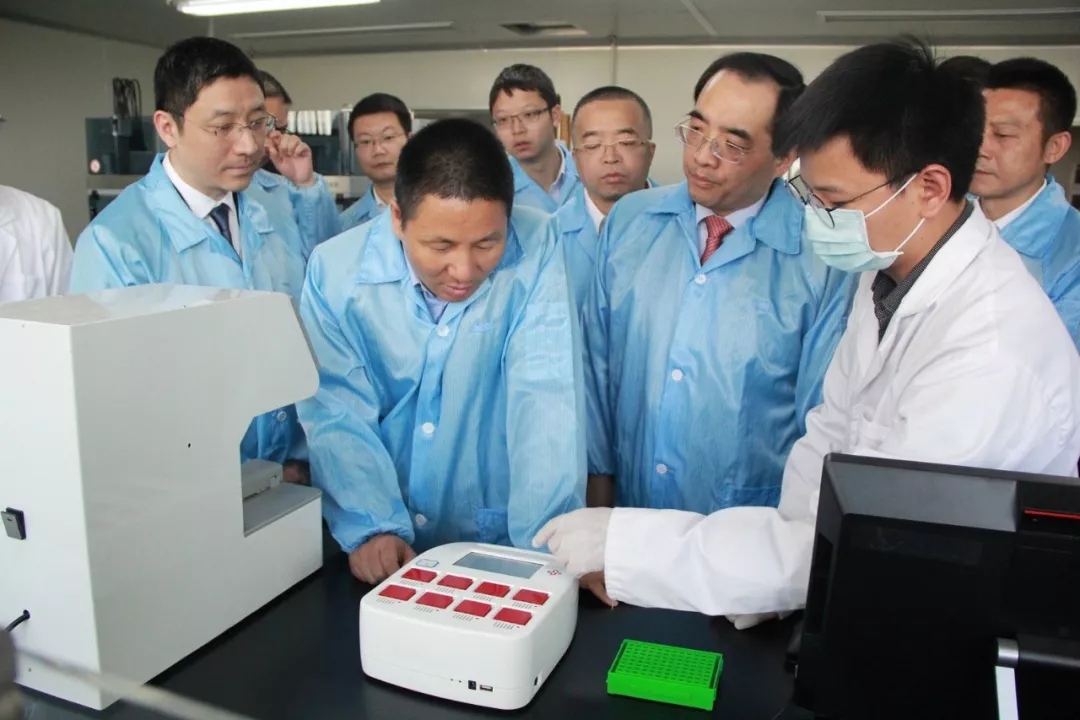 在研發(fā)實(shí)驗(yàn)室,王建軍總經(jīng)理一行深入了解了公司國(guó)際領(lǐng)先的技術(shù)和產(chǎn)品開(kāi)發(fā)情況,特別對(duì)公司研發(fā)的POCT移動(dòng)分子診斷系統(tǒng)、血篩試劑、適合大規(guī)模宮頸癌篩查的HPV檢測(cè)試劑給予了高度關(guān)注。對(duì)公司將分子診斷從傳統(tǒng)的主要應(yīng)用于三甲醫(yī)院、獨(dú)立實(shí)驗(yàn)室,拓展到基層醫(yī)院、健康管理、軍事管理、生物應(yīng)急、動(dòng)物衛(wèi)生等領(lǐng)域,推動(dòng)分子診斷應(yīng)用普適化、全場(chǎng)景化,王建軍總經(jīng)理給予了高度肯定。