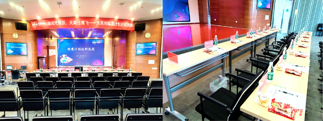 為了迎接每一位雛鷹的到來,會場早就布置得整整齊齊,擺桌椅拉橫幅、放置評委資料、準備精美茶歇等,為活動提供秩序保障和個性化服務。