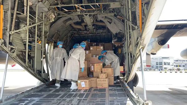 5月19日,由圣湘生物副總經理喻霞林、范旭帶隊的7人技術服務小組,攜新冠病毒核酸檢測試劑、儀器等抗疫物資乘國外政府派出的軍機正式啟程,奔赴東南亞國家,馳援全球抗疫,貢獻圣湘力量。