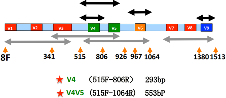 根據(jù)研究需求選取不同區(qū)域作為多樣性分析擴(kuò)增引物。