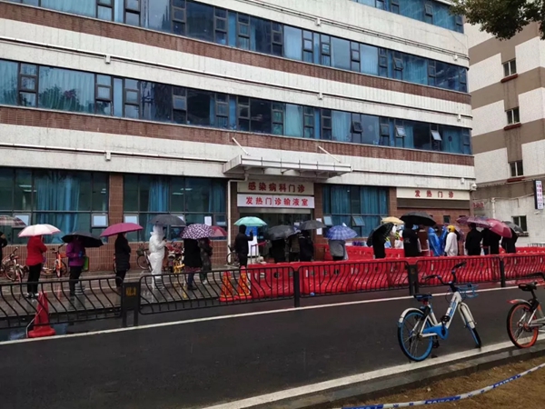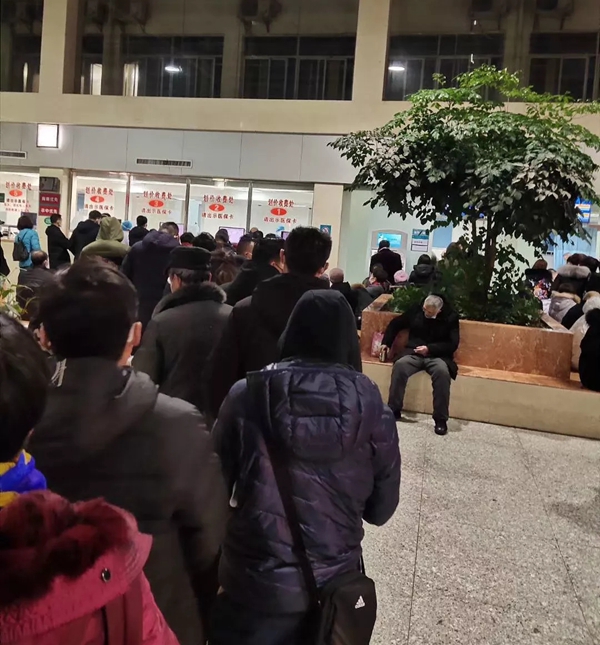 當天清晨,武漢協和醫院發熱門診前排著長隊的市民。
