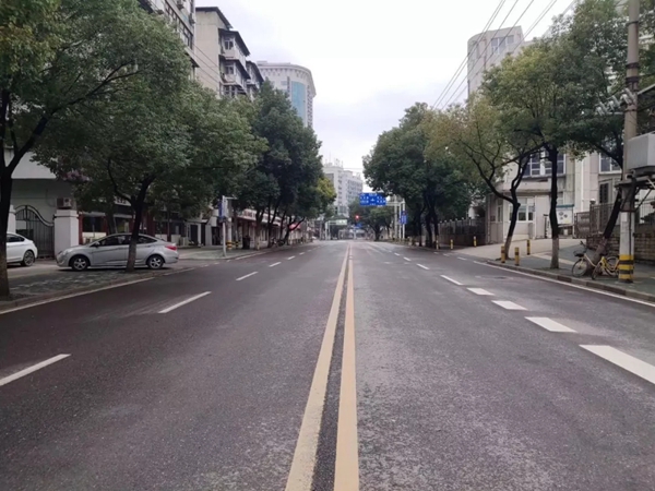 今日凌晨,武漢所有住宅小區實行封閉管理之后,街上不見行人。